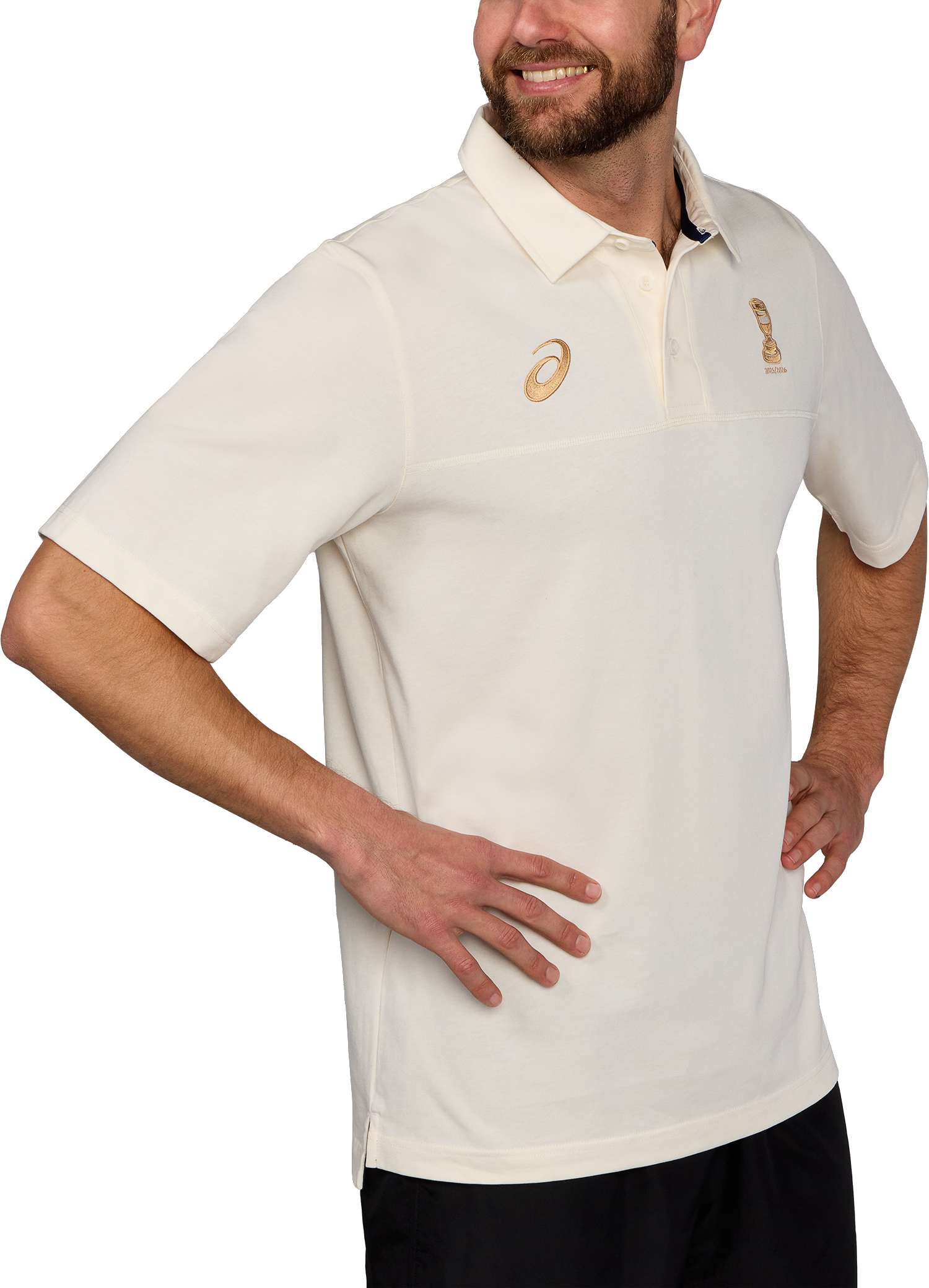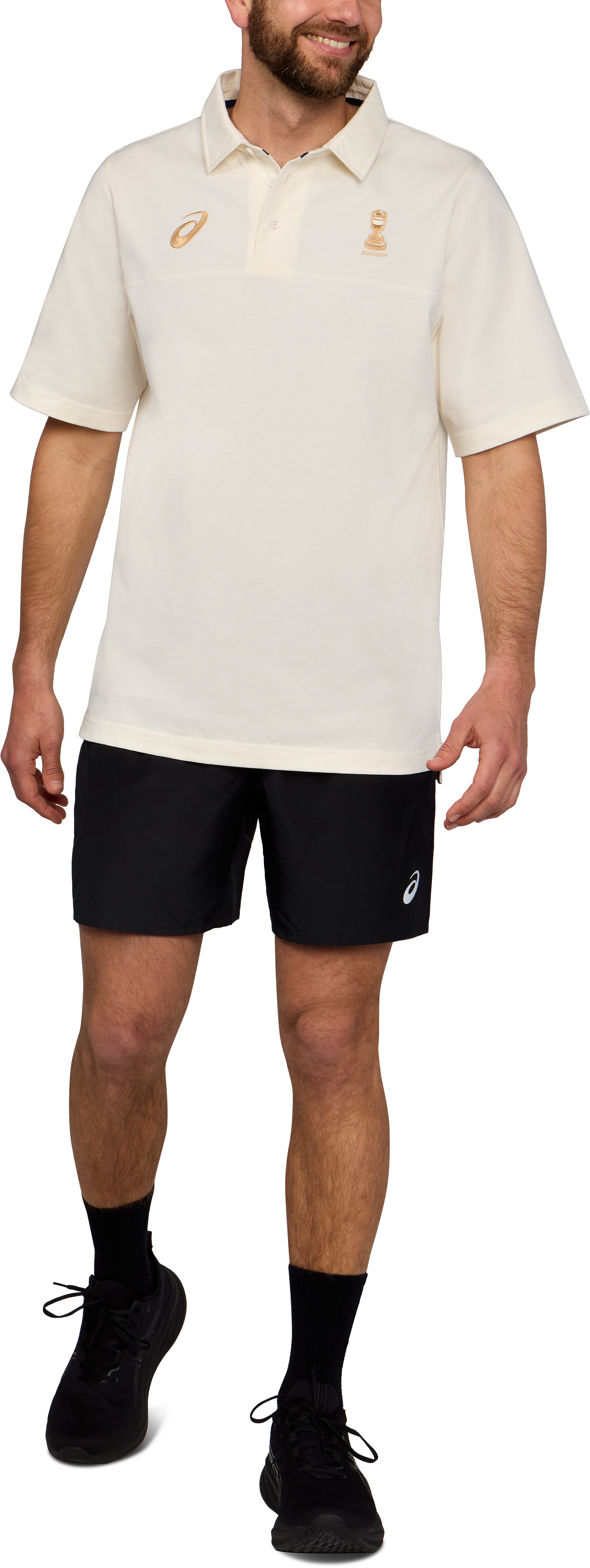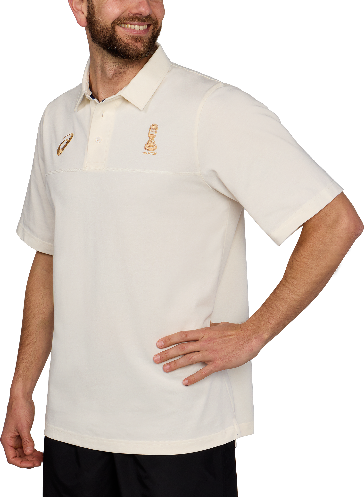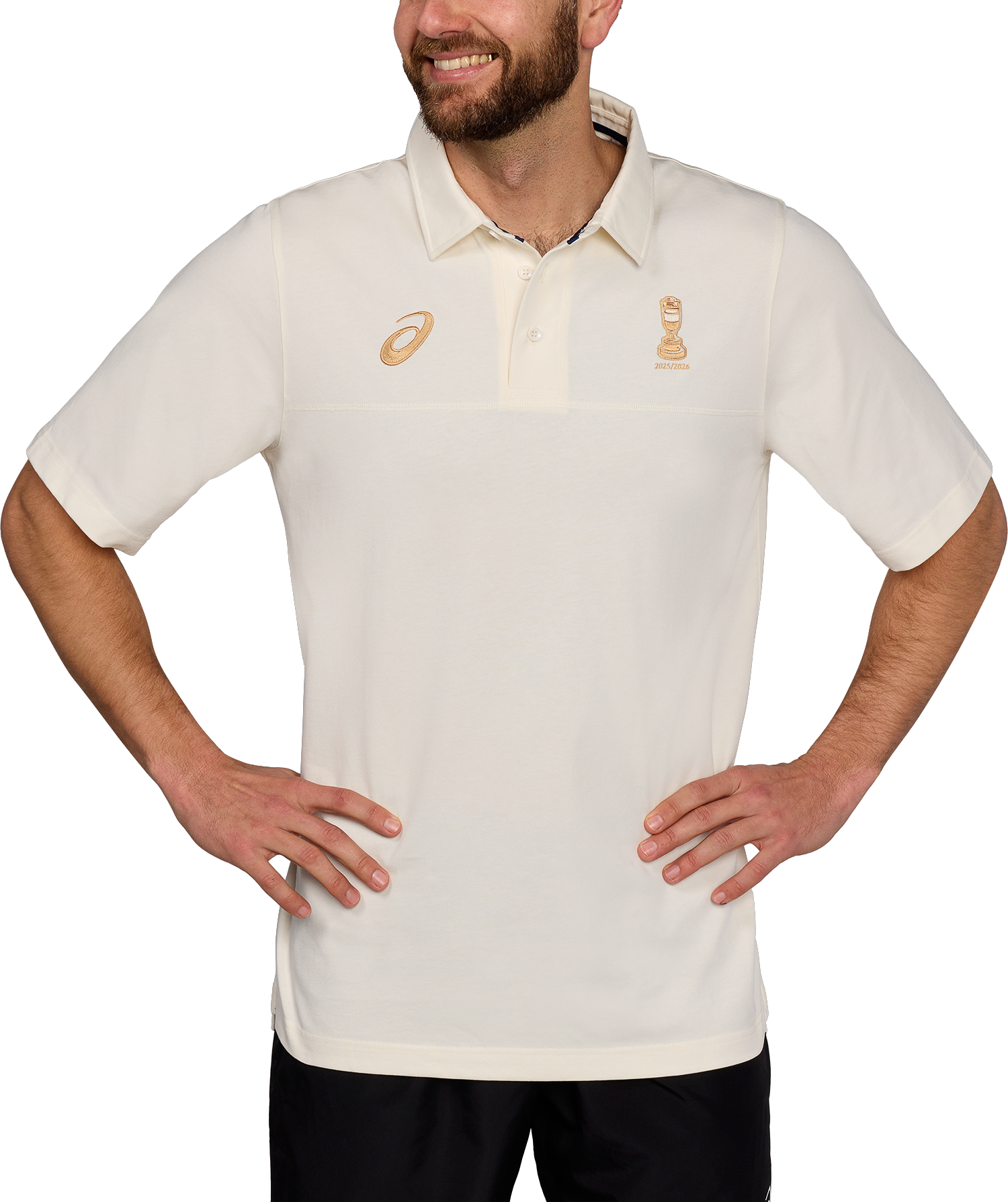 The heavier weight cotton jersey enhances heritage inspired elements such as the extended sleeve length, oversized button placket and traditional collar. Embroidered logos recognise the 25/26 Ashes series to complete this classic style.