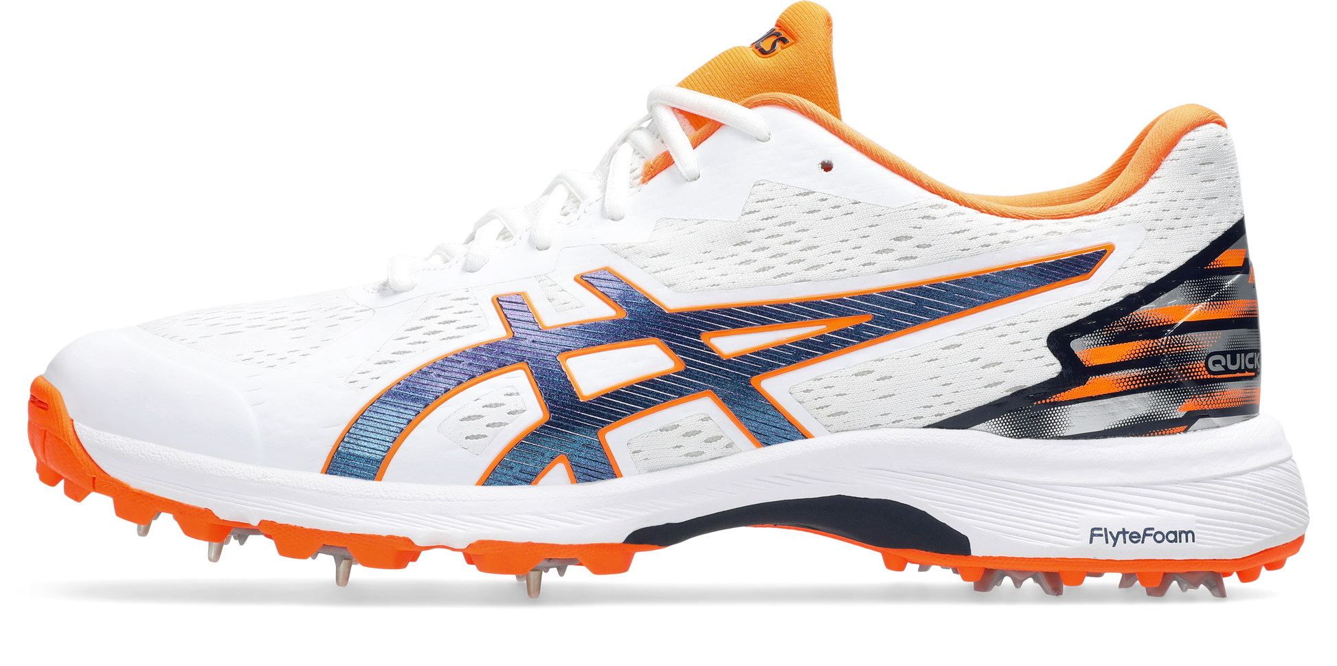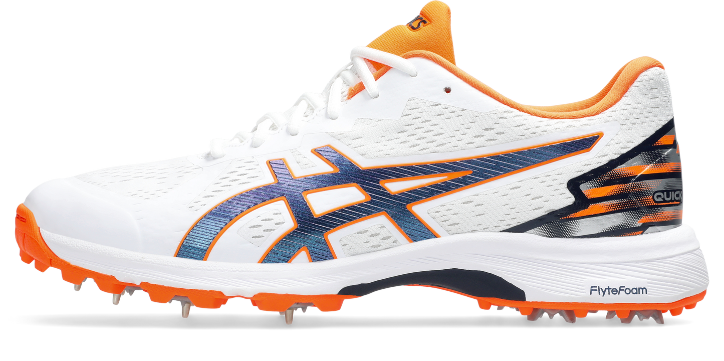 Features removable studs and a rearfoot GEL™ technology unit to absorb impact, the QUICK SINGLE™ FF is a cricket batting and all rounder shoe that is lightweight, providing maximum grip and traction for a faster game.