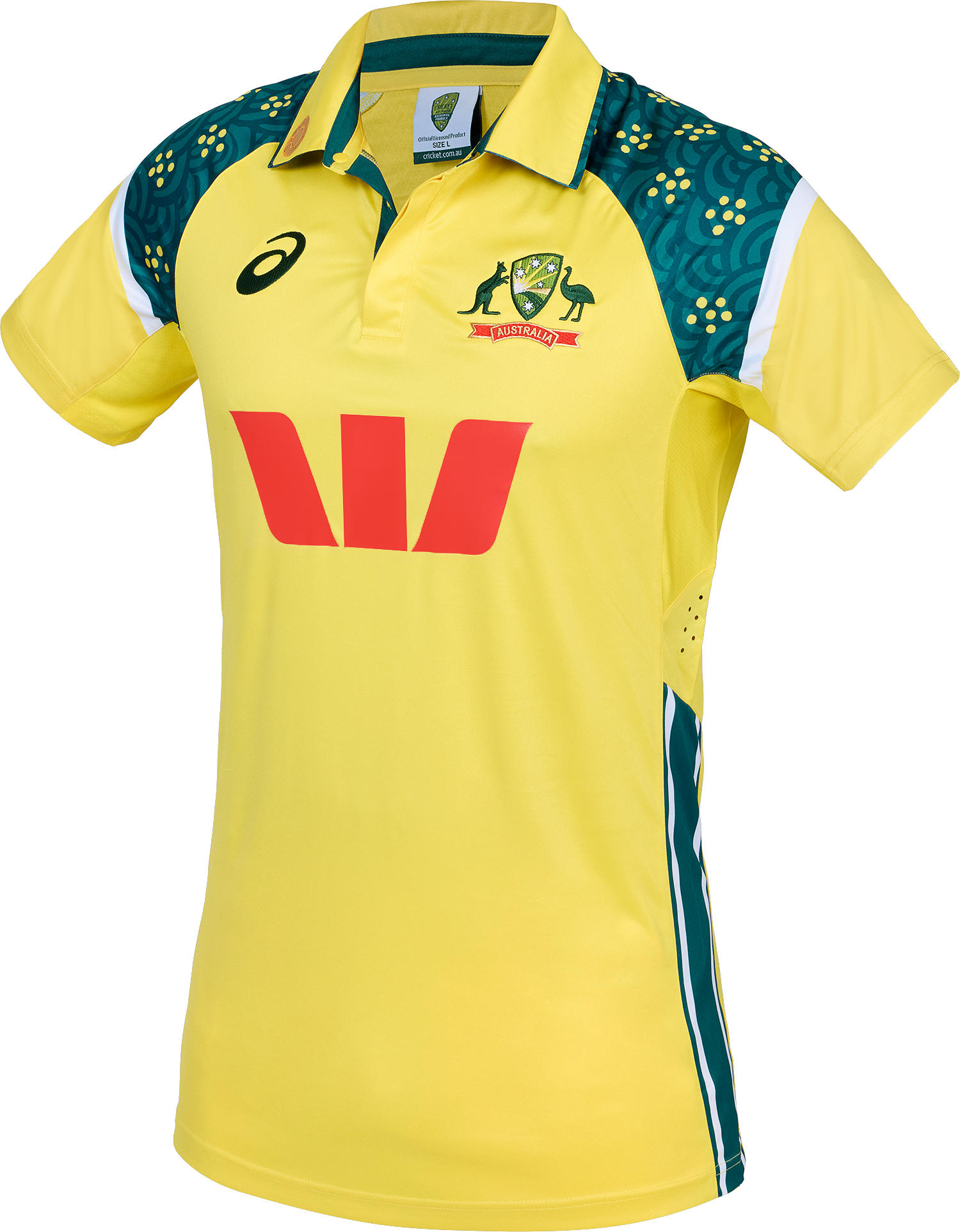 The new 2025-2026 CRICKET AUSTRALIA REPLICA ODI SHIRT features Indigenous artist Aunty Fiona Clarke's NEW Walkabout First XI design which appears throughout the match day collection showcasing Cricket Australia's continued support of Diversity & Inclusion in the community.