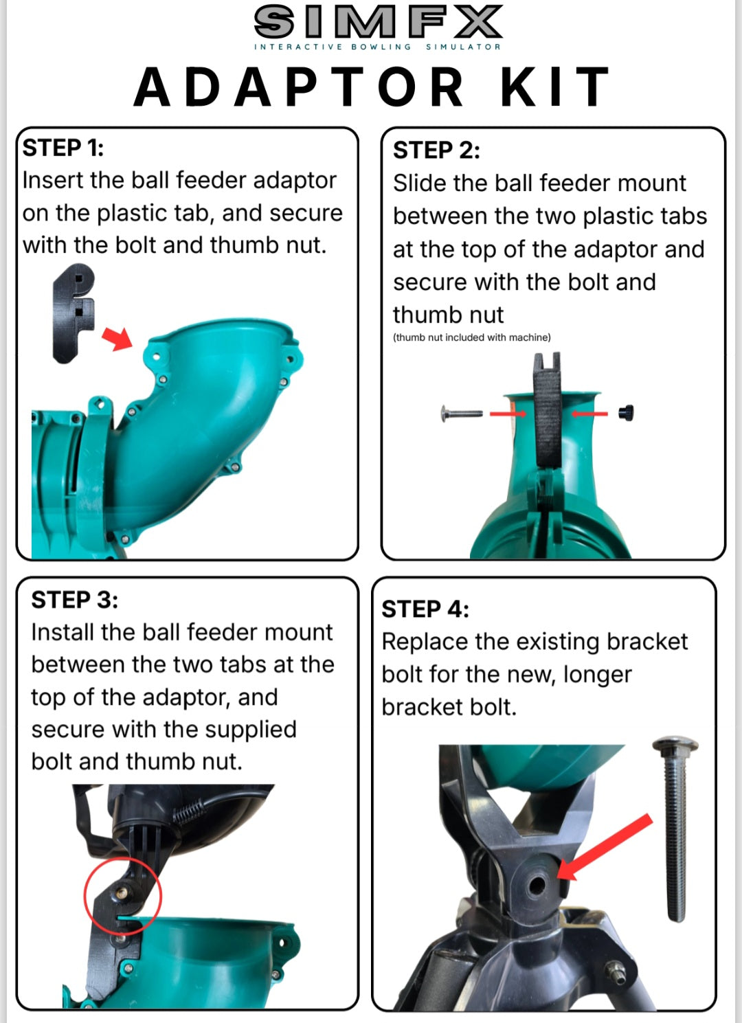 - The SimFX is compatible with all 195XT machines, and the most recent 176XT version machines. For previous 176XT version machines, a small adapter kit is required for the ball feeder.