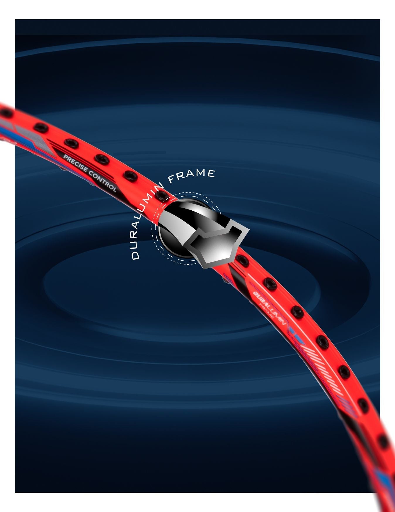 Introducing Hundred's Powertek 2000 Pro badminton racket. Crafted with a duralumin frame and carbon graphite shaft, this racket boasts a head-heavy balance and Power frame for exceptional power and precision. The Curve² technology enhances control, while the slim shaft with low resistance tech ensures swift maneuverability. Elevate your game with the Powertek 2000 Pro - where power meets precision.