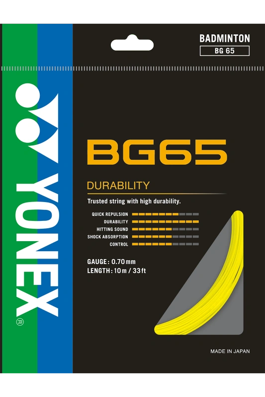 The 0.70mm specially braided fibre increases string abrasion durability. The BG65's all-round performance makes it the choice of the world's top players